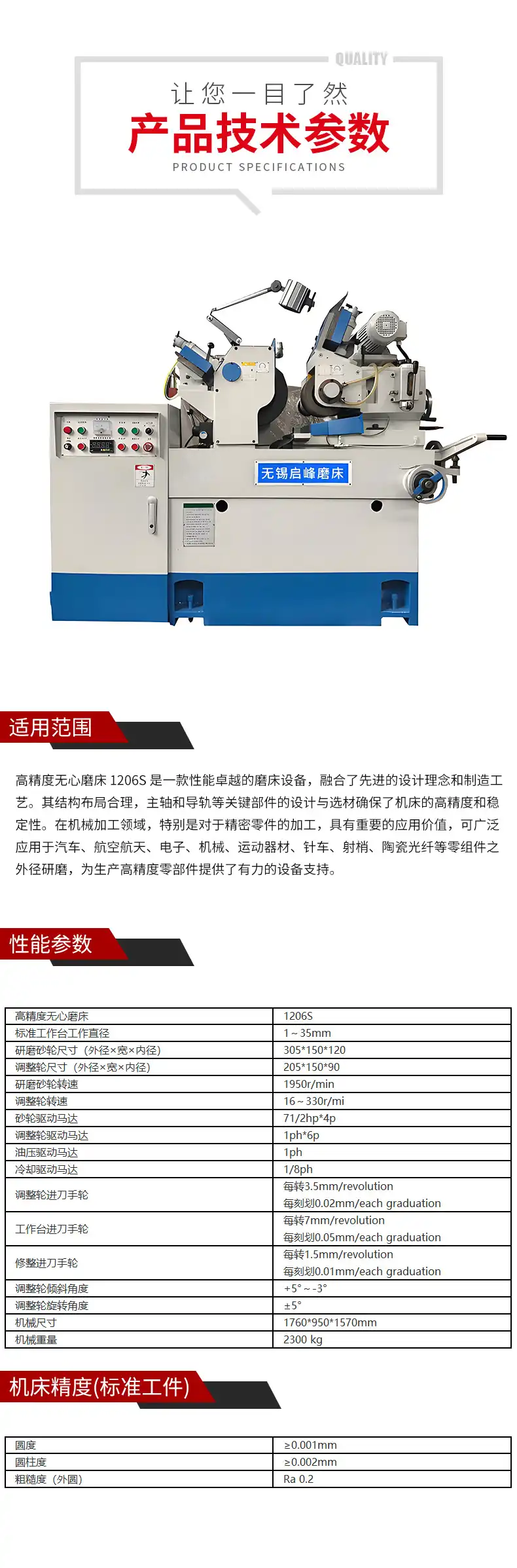 通磨直径范围:1-35mm通磨长度范围:5-120mm圆 度 : ≥0.001mm圆 柱 度: ≥0.002mm粗糙度(外圆):Ra0.2
